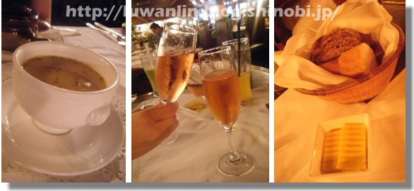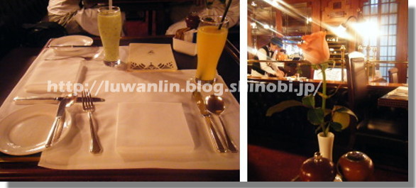 巴賽麗廳感覺...嗯...有80年代西餐廳的風,裝潢沒有犀利的現代感,但在昏黃的燈光佈置下,卻令人感到很舒服、放鬆。也許這是因為來這裡用餐的人都一派優閒,讓我們也放下了在城市中的匆忙步調,準備從從容容地享受第一次的高級料理XD