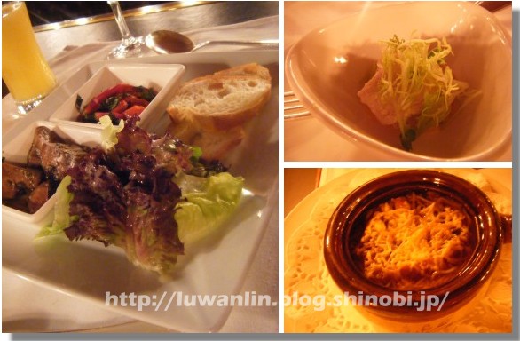 先上來的是傳說中亞都麗緻爆炸好吃的法國麵包,嗯,好硬的皮~~XD..沾上奶油好好吃~~我喜歡!!!反而是五穀麵包我不愛;午餐沒有肉泥的醬,有點可惜,下次還可以再來吃晚餐(發財??)。