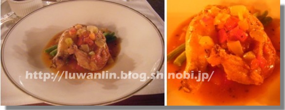 接著送來套餐的主餐「慢燉普羅旺斯嫩雞」,就一隻雞腿,不嫩,很硬;我懷念樂華夜市99元的雞腿排。下面的蘆筍沾上醬很好吃(後來雞腿也打包了....完全不想提雞肉,你就知道這雞肉有多.....Or2....)