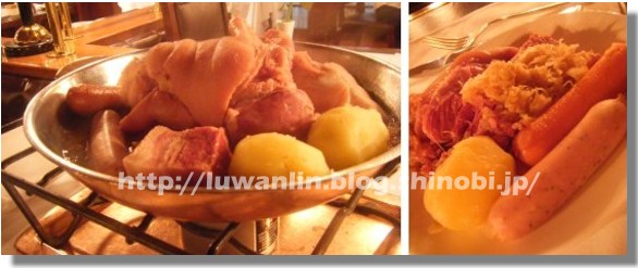 請以後要來點豬腳的人們,切記切記,這份適合2個人吃呀!!!服務生都沒跟我們講..囧r2...來講講這道料理,水煮的豬腳,皮燉得軟爛,可是我覺得吃第三口就有點噁心XD,雖然沾上第戎芥末醬與酸菜,還是止不住那軟爛口感讓我喉頭所做的反應囧....我不愛這道菜其實(爆)